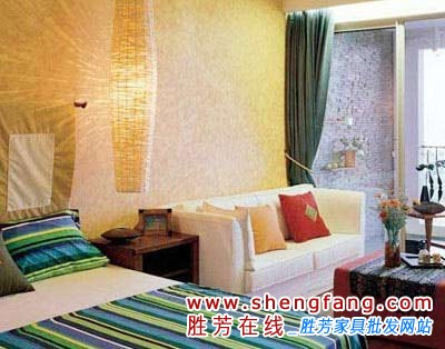 这样不但减除了卧室的狭隘感,也让客厅从视觉上即刻大了一倍。当然,此时最重要的,就是设置一个好的隔断。