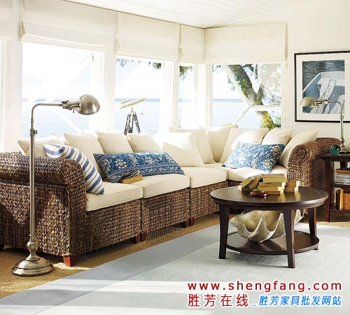 原本藤制的家具就带有自然清新的感觉,但是要营造海洋般的清爽,就不是简单的蓝色印花抱枕可以做到的了。