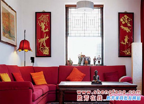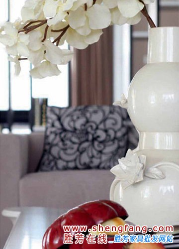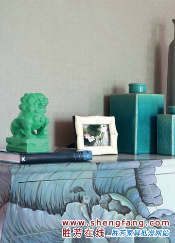 将传统中式的花朵图案,直接运用于家具上,配以典型的中式配饰,让人感觉亲切,又不失传统的典雅。