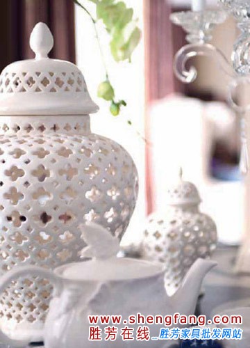 中国传统瓷器的器型,加之异域风情结合的镂空雕花工艺,为中国风平添了一份清新与雅致色彩。