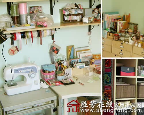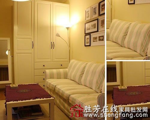 沙发是最小清新的嫩绿系,主人亲自动手做了抱枕,坐垫和沙发靠背,抱枕和坐垫都是用废旧的碎布拼的,别具一格,也缝制了主人对家的爱。