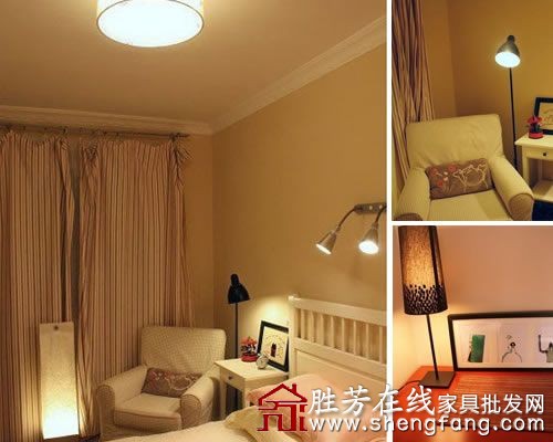 简洁线条的家具,简单、随性。金色且极具质感的裙边,和白色的床品形成强烈的对比,为略显朴素的房间增添了几分华丽。