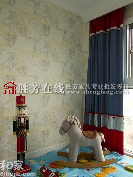 孩子的房间,有很明显的美式特色,红蓝特色的窗帘也正好适合男孩子。