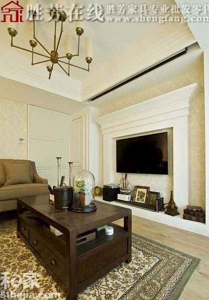 好了,最漂亮的客厅闪亮登场了,电视背景墙是防壁炉形状的,很有特色的设计。