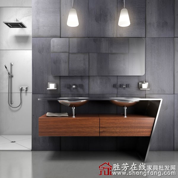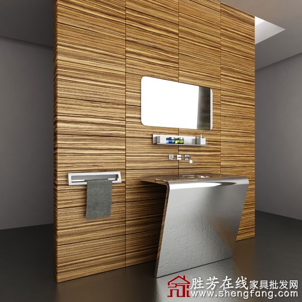 这间卫浴间是由意大利公司Componedo设计出来的,高品质的不锈钢配上木质材料将整间浴室体现出一种刚柔并济的美。简单的物品的摆设体现出简约的风格,巧妙的颜色搭配配上柔和的线条,让整间浴室看起来是那么的时尚。