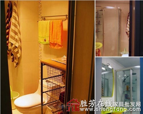 卫生间的设计是非常的实用的,椭圆型的淋浴房,简易的收纳设计,简约的卫浴用品。