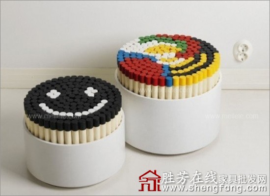 这款凳子看起来简单,但是它是由特殊的材质制成,坐上去非常舒适,重要的是,可以自己拼凑图案哦。